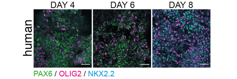 Teresa’s previous research characterised the development of the human spinal cord using single-cell transcriptomics, identifying human specific elements but also showing that similarities with mouse cells confirm their use as a reasonable model for the field (Rayon et al. 2021). She has also uncovered links between protein stability and species-specific developmental timing (Rayon et al. 2020).